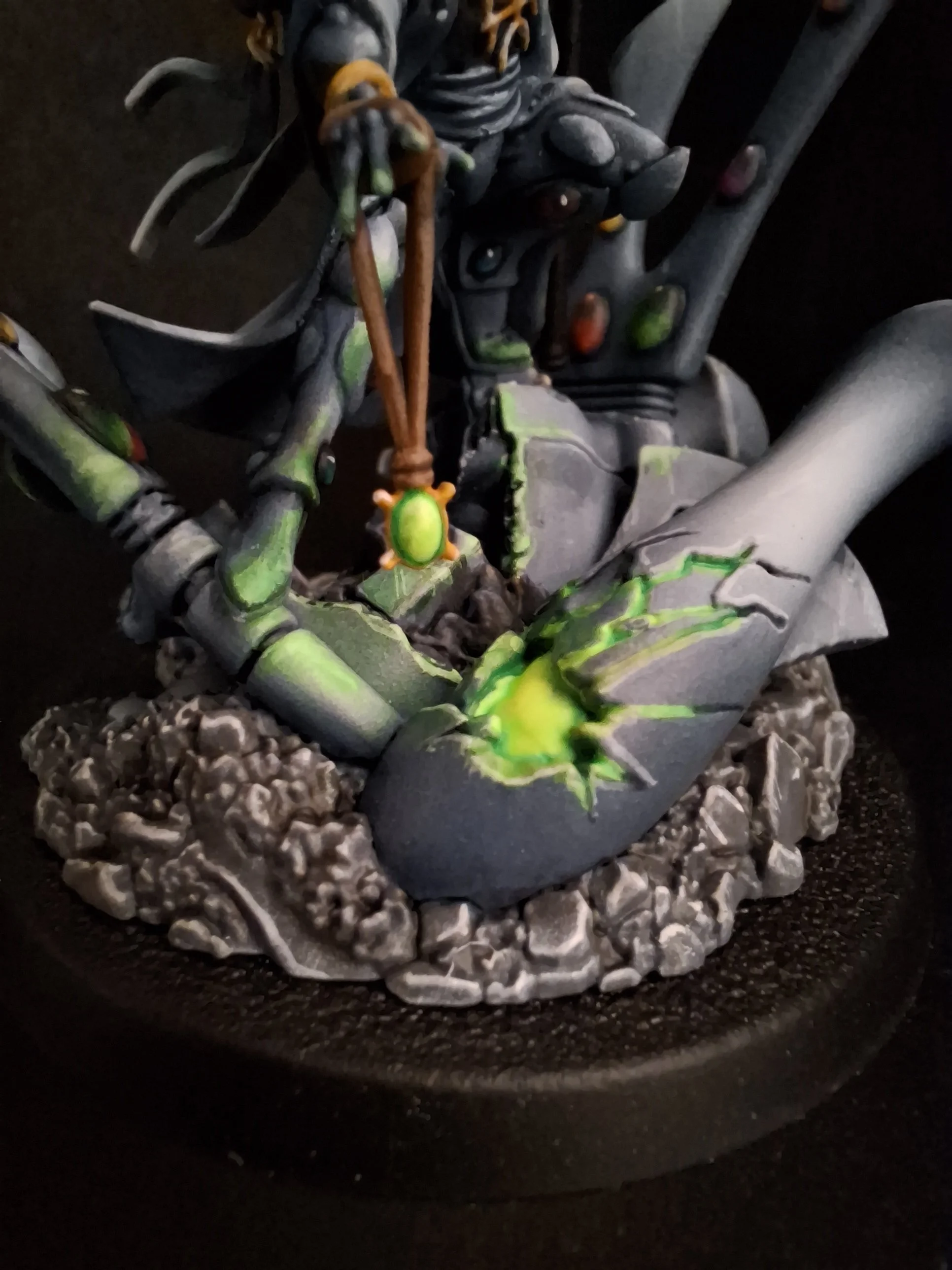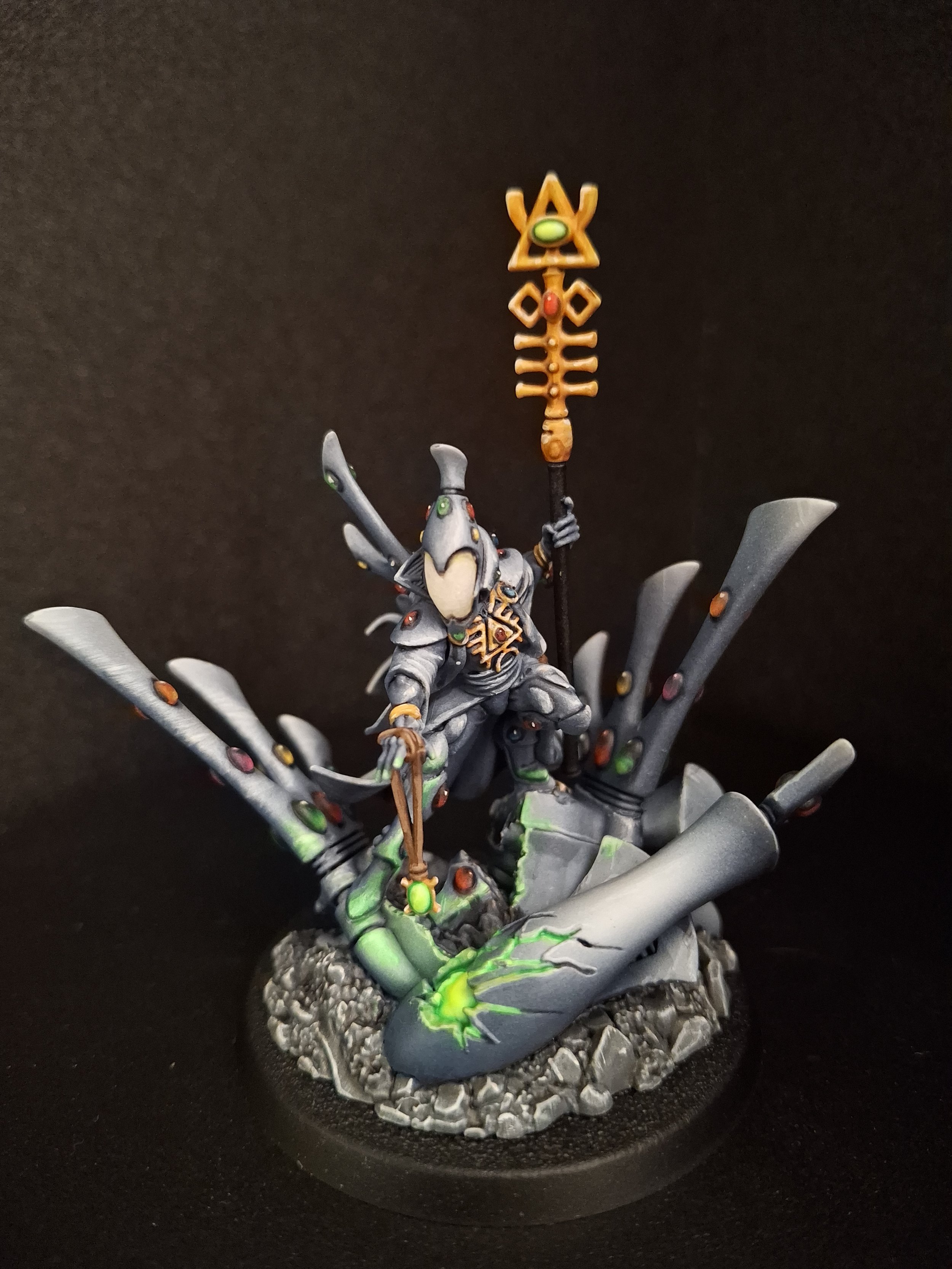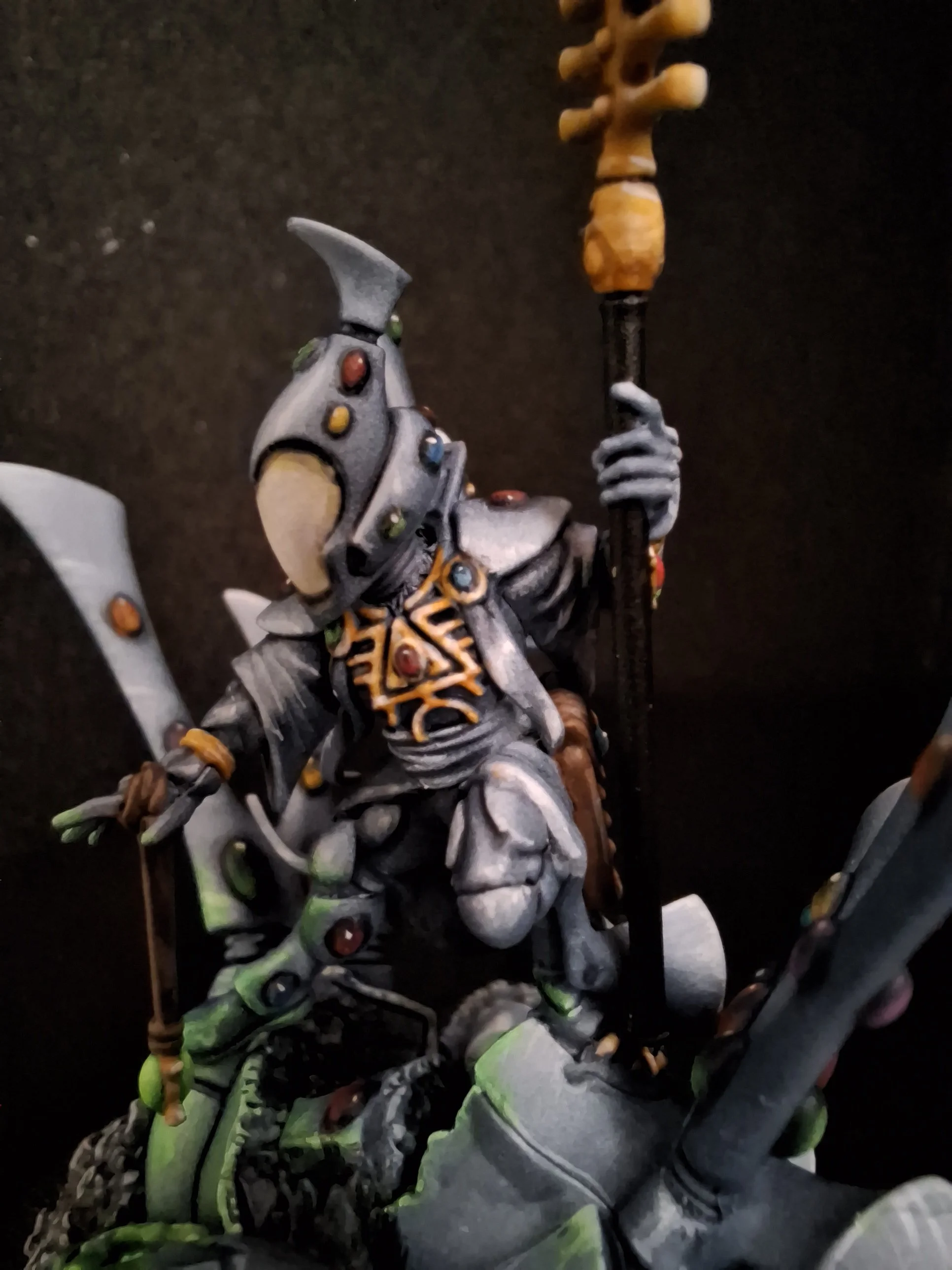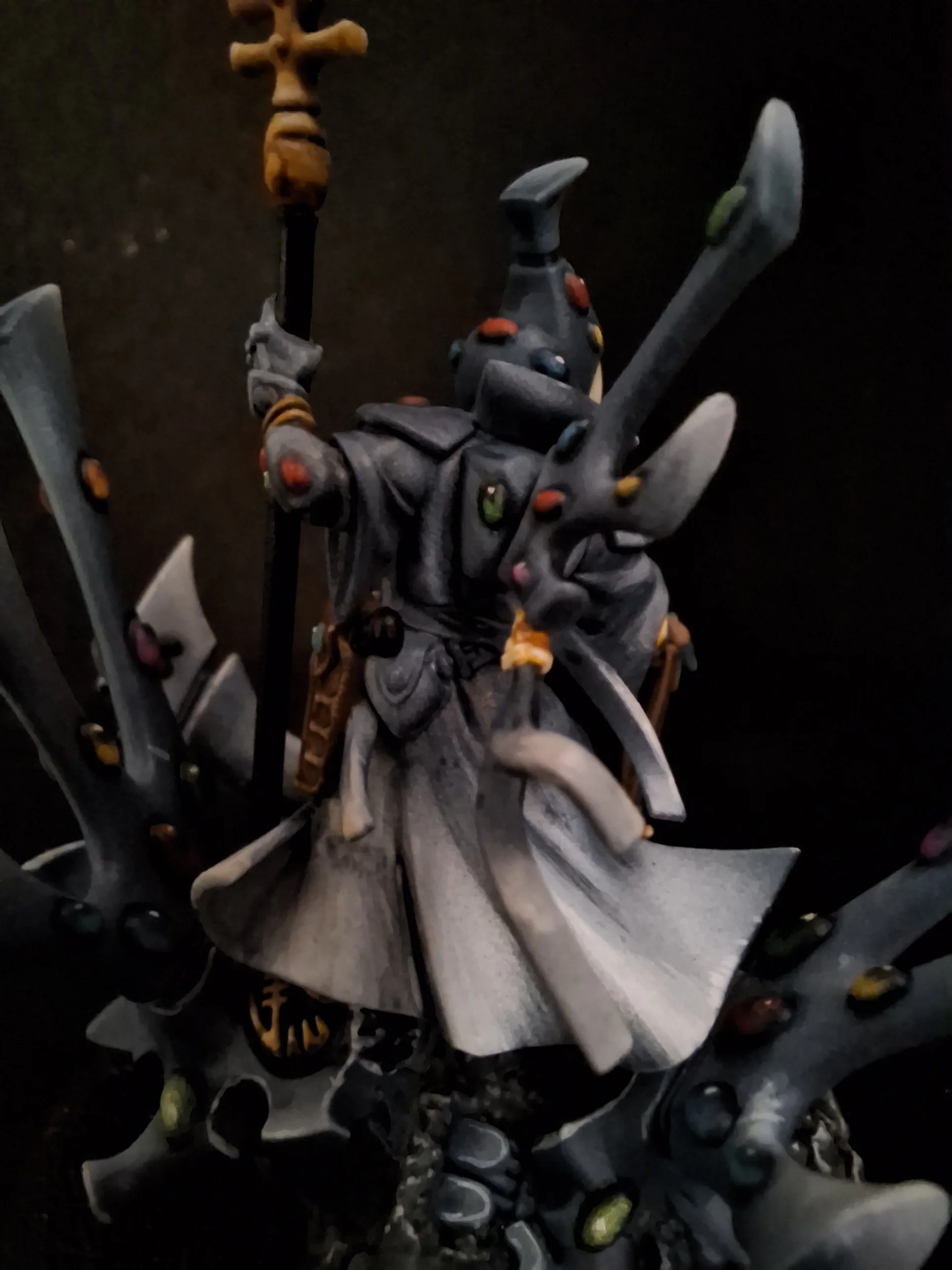 Another beautiful sculpt from the Warhammer commemorative series. I had a lot of fun painting this from start to finish. I am especially proud of my decision to stay away from the lore friendly schemes and ignore the box art as well. I used the scheme from the Wraith Knight I painted some time ago. My layering and gem techniques have improved a lot!